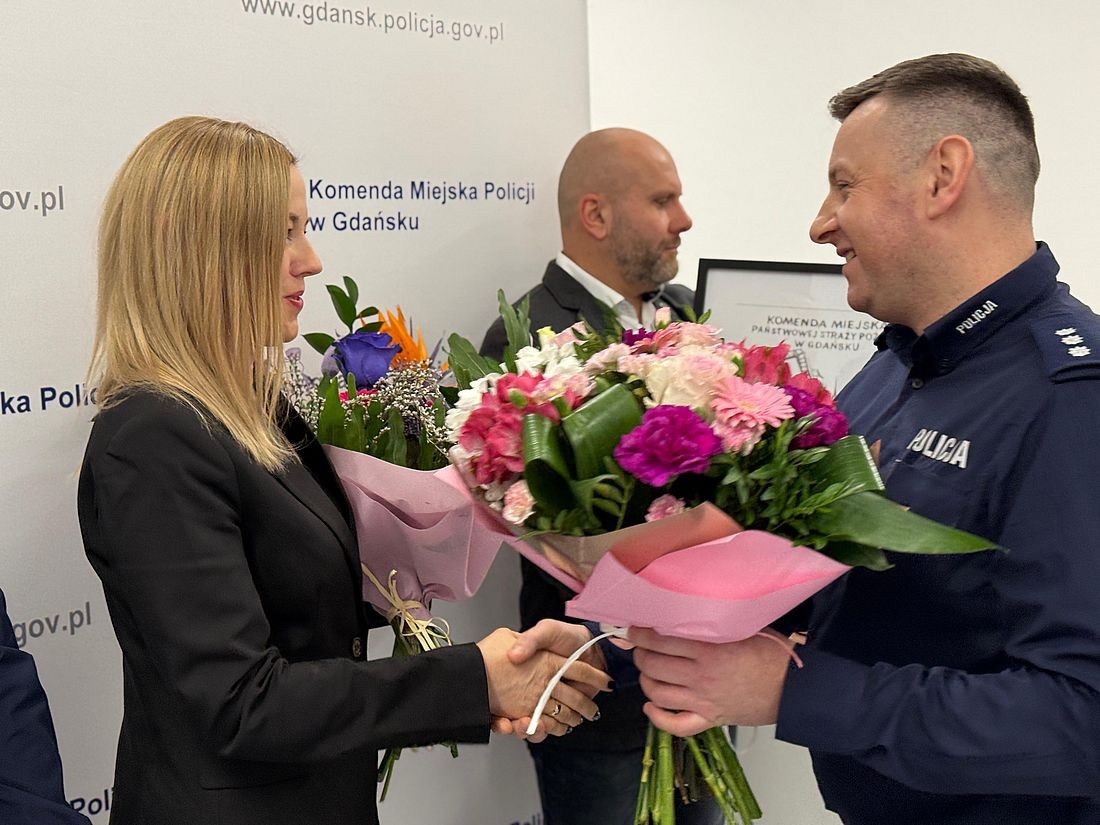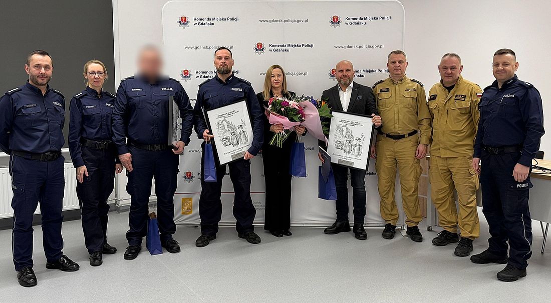 Podziękowania złożyli także I Zastępca Komendanta Miejskiego Policji w Gdańsku nadkom. Jarosław Neumann, Naczelnik Wydziału Prewencji KMP w Gdańsku oraz Komendant Komisariatu IX w Gdańsku kom. Katarzyna Okupińska, którzy docenili zdecydowane i skoordynowane działanie osób biorących udział w akcji. Jak powiedzieli, to dzięki nim możliwe było uratowanie życia oraz bezpieczne przejęcie działań gaśniczych przez Straż Pożarną po jej przybyciu na miejsce.