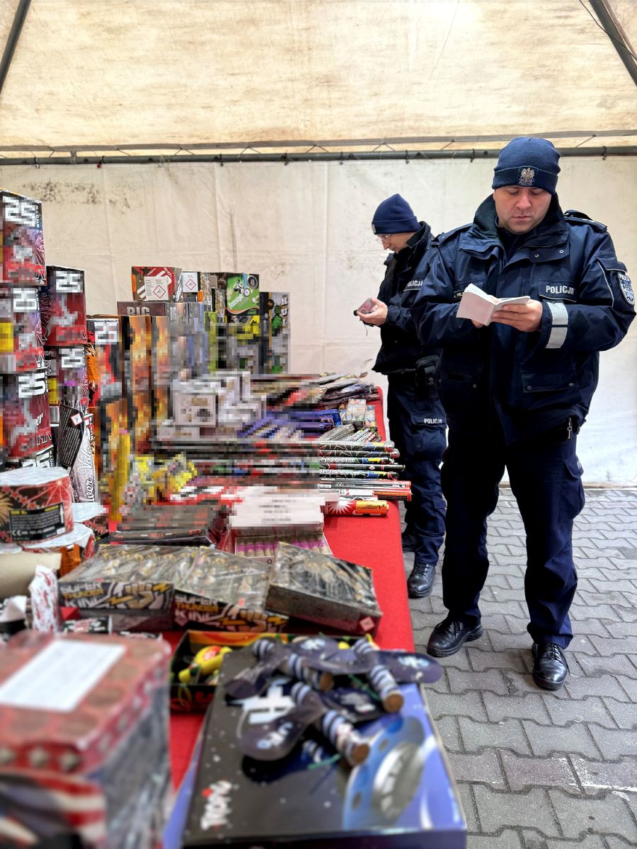 Policjanci sprawdzają punkty sprzedaży fajerwerków.