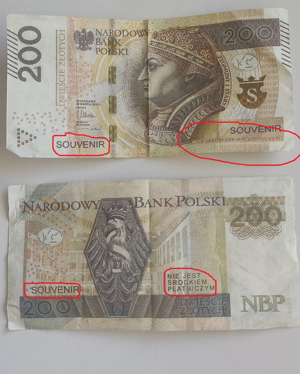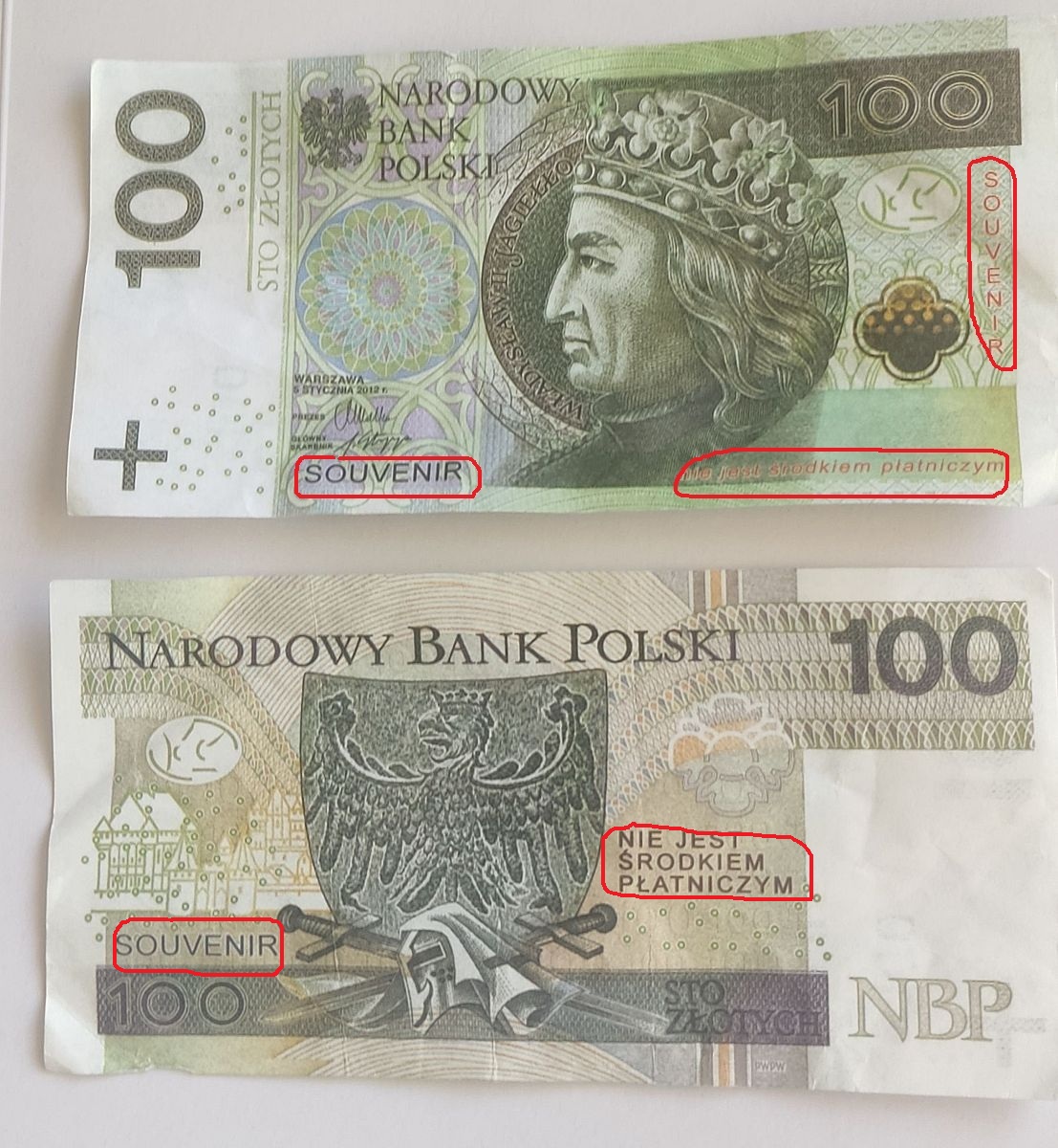 Zatrzymany oszust został doprowadzony do komisariatu. Pokrzywdzony złożył zawiadomienie i szczegółowo opisał, w jaki sposób sprawca zamierzał go oszukać. Zabezpieczone „pieniądze” zostały poddane oględzinom i dołączono je do sprawy jako dowód. Jak się okazało, cztery stuzłotowe oraz trzy dwustuzłotowe banknoty łudząco przypominały te prawdziwe, jednak widniał na nich napis, że nie są środkiem płatniczym.
