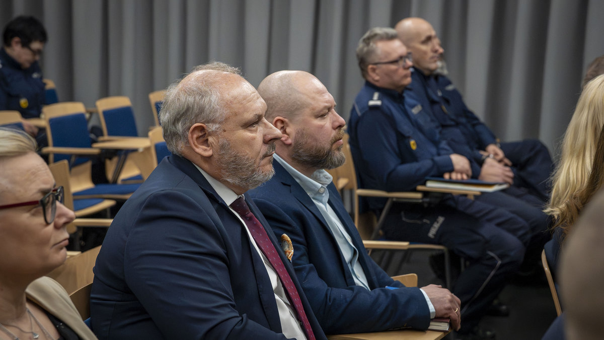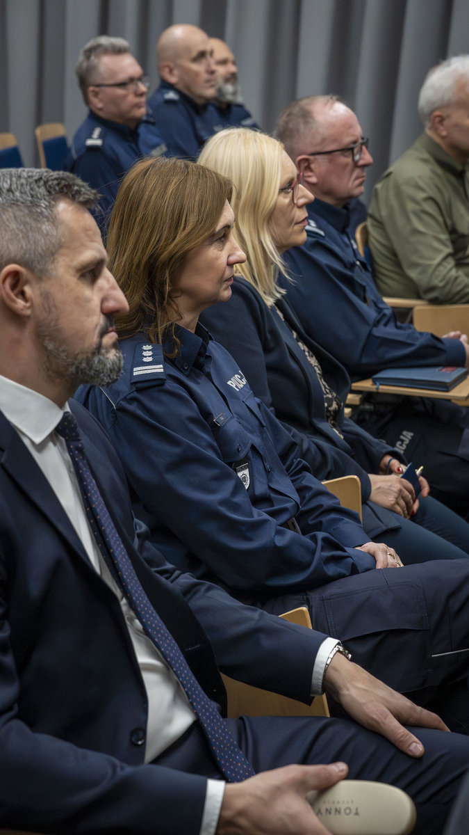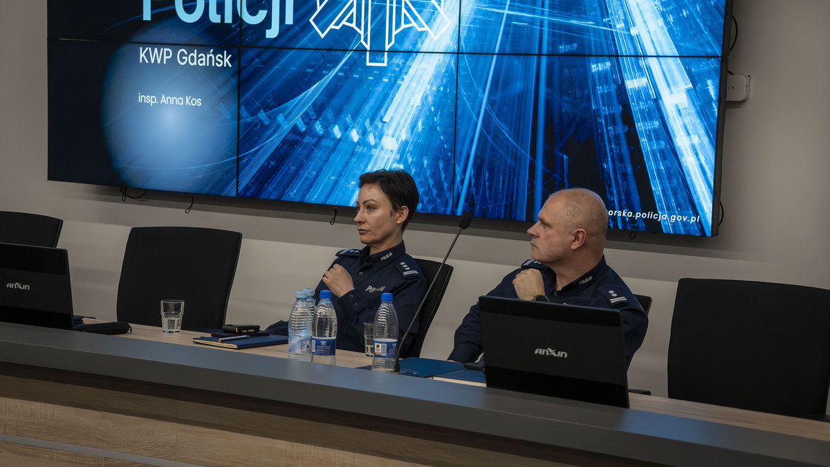 Komendant Wojewódzki Policji w Gdańsku oraz jego zastępcy - insp. Anna Kos, mł.insp. Tomasz Juński oraz insp. Alina Majchrzak zaprezentowali wyniki osiągnięte przez funkcjonariuszy w ubiegłym roku, wskazali również główne cele i założenia do realizacji w roku 2026. Komendant wojewódzki podziękował pomorskim policjantom i pracownikom Policji za zaangażowanie w pracę i dotychczasowe wyniki w służbie na rzecz społeczeństwa. Ogromną wartość służby na rzecz bezpieczeństwa i porządku publicznego podkreślili również zaproszeni na odprawę.