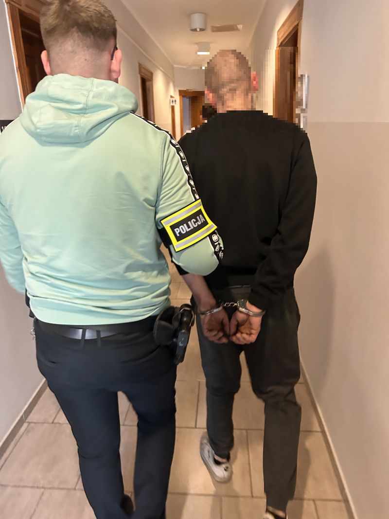 Mężczyzna usłyszał zarzuty dotyczące kradzieży paliwa oraz poruszania się pojazdem z nieprzypisanymi do niego tablicami rejestracyjnymi. Zarzuty mogą ulec zmianie po uzyskaniu wyników badań krwi. Sprawa ma charakter rozwojowy.