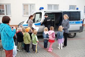 Była to okazja, aby przybliżyć maluchom pracę Policji jak również przypomnieć im numery telefonów alarmowych. Podczas wycieczki dużą popularnością szczególnie wśród chłopców cieszył się radiowóz oraz strzelnica. Na zakończenie wizyty wszyscy stanęli do wspólnej fotografii.
