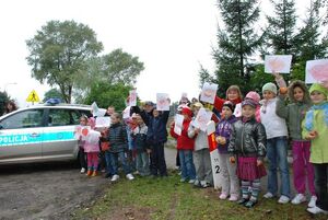 Dzisiaj przed południem słupscy policjanci ruchu drogowego wraz z dziećmi najmłodszych klas Szkoły Podstawowej we Wrześciu przeprowadzili akcję prewencyjną pod hasłem Jabłko - cytryna”. Akcja miała na celu uświadomienie najmłodszym uczestnikom ruchu drogowego zagrożeń związanych z drogą do szkoły, a kierowcom zwrócenie uwagi na przestrzeganie przepisów ruchu drogowego dotyczących w szczególności ograniczenia prędkości w pobliżu szkół. Łącznie skontrolowano prawie 30 kierowców, z których większość skosztowała kwaśnej kary”.