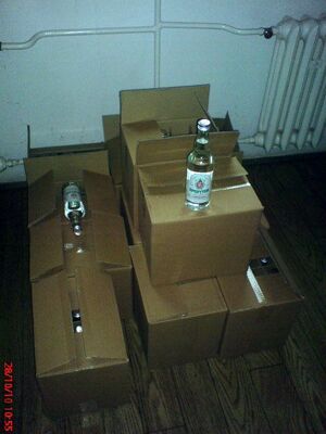 Wczoraj około godziny 16:00 policjanci z Komisariatu Policji w Rumi wspólnie z Strażnikami Granicznymi z Łeby ujawnili w mieszkaniu 40-letniego rumianina 136 półlitrowych butelek alkoholu bez akcyzy. Butelki były zapakowane w kartony. Ponadto podczas kolejnych przeszukań pomieszczeń, funkcjonariusze znaleźli pistolet gazowy 9 mm produkcji West Germany wraz z magazynkiem i dwoma sztukami naboi gazowych. Mężczyzna został już przesłuchany. Materiały sprawy dotyczącej spirytusu bez akcyzy zostaną przekazane do Urzędu Celnego.