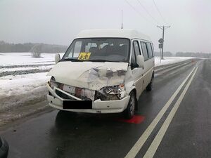 Pierwsza kolizja miała miejsce w Dankowie ok. godz. 9.15, gdzie zderzyły się czołowo ford transit z samochodem ciężarowym. Przyczyną zderzenia było prawdopodobnie niedostosowanie prędkości do warunków panujących na drodze przez kierującego ciężarówką. Mężczyzna stracił panowanie nad pojazdem, zjechał na przeciwległy pas ruchu i uderzył w nadjeżdżającego forda, którym jechała młodzież szkolna w wieku 12-13 lat. Na szczęście żadna z 11 osób podróżujących busem nie ucierpiała. Obaj kierowcy byli trzeźwi. Kierującego samochodem ciężarowym ukarano mandatem karnym.