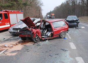 Dzisiaj około godz. 10.50 dyżurny starogardzkiej komendy otrzymał informację o wypadku drogowym jaki wydarzył się na ulicy Mickiewicza. Jak wynikało ze zgłoszenia, na wyjeździe ze Starogardu w kierunku Tczewa zderzyły się jednocześnie aż trzy auta osobowe. Ze wstępnych ustaleń policji wynika, że na tył skręcającego w lewo volkswagena najechał jadący w kierunku autostrady A1 ford. W wyniku tego uderzenia volkswagen przekroczył oś jezdni i zderzył się z jadącym w przeciwnym kierunku mercedesem.