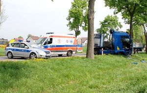 WYPADEK DROGOWY NA DRODZE NR 22 –TIR UDERZYŁ W DRZEWO