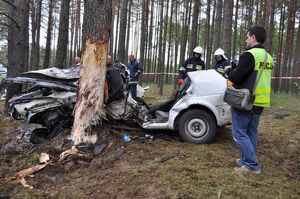 Mundurowi wstępnie ustalili, że 26 – letni mieszkaniec gm. Studzienice jechał w kierunku Wojska. Na zakręcie w lewo z nieustalonych w chwili obecnej przyczyn zjechał na prawe pobocze, a następnie uderzył w drzewa. W wyniku poniesionych obrażeń 26 – latek zginął na miejscu.