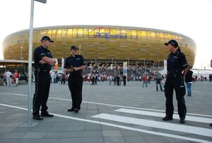 Funkcjonariusze wszystkich pionów dbali o bezpieczeństwo zarówno kibiców jak i mieszkańców Gdańska. Już od rana, we wtorek, policjanci zabezpieczali główne trasy dojazdowe, a także cały rejon wokół obiektu sportowego. Na samym stadionie zaczął działać komisariat, gdzie, w razie potrzeby, można było przeprowadzić niezbędne czynności procesowe. Policjanci z grup dochodzeniowo-śledczych, antyterroryści oraz funkcjonariusze z wyszkolonymi psami czekali w odwodzie.