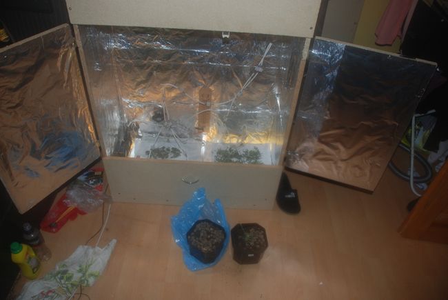 Po wejściu do mieszkania, okazało się, że 22-latek samodzielnie skonstruował specjalną szafkę służącą do uprawy i suszenia konopi indyjskich. Szafka ta wyposażona została w lampy oraz wentylację. Mundurowi w mieszkaniu zabezpieczyli 63 woreczki z amfetaminą oraz 13 mniejszych woreczków i jeden większy woreczek z marihuaną. Podczas przeszukania policjanci znaleźli też pieniądze oraz wagę elektroniczną.