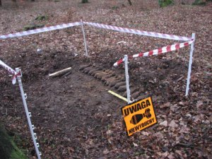 Wczoraj kryminalni z gdańskiej komendy wojewódzkiej ustalili iż w lesie przy ul. Spacerowej znajdują się niebezpieczne niewybuchy z okresu II Wojny Światowej. Kiedy przyjechali wczesnym rankiem na miejsce, okazało się, że znalezisko to tzw. magazyn polowy. Funkcjonariusze zabezpieczyli 12 granatów moździerzowych ( 82mm), pociski artyleryjskie (88mm i 45mm), 6 granatów ręcznych i około 400 szt. amunicji karabinowej. Teren wokół tego „arsenału” został zabezpieczony tak aby żadnej osobie postronnej nie stała się krzywda.