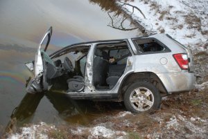 JEEP GRAND CHEROKEE WPADŁ DO STAWU, 4 OSOBY ZGINĘŁY