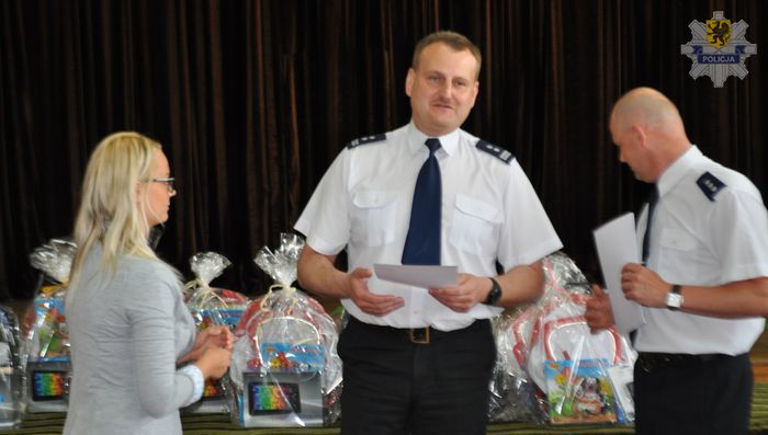 W auli konferencyjnej Komendy Miejskiej Policji w Słupsku w piątek odbyło się uroczyste zakończenie konkursu plastycznego pod hasłem „Policja na straży środowiska naturalnego powiatu słupskiego". Zadaniem konkursu było zainteresowanie uczniów, nauczycieli i rodziców problematyką ochrony środowiska, występujących zagrożeń i roli Policji w ich zwalczaniu. Upominki i gratulacje wręczył zwycięzcom Komendant Miejski Policji w Słupsku mł. insp. Andrzej Szaniawski , wiceprezes Stowarzyszenia Bezpieczny Region Słupski Robert Czyż oraz przedstawiciel Słowińskiej Grupy Rybackiej.