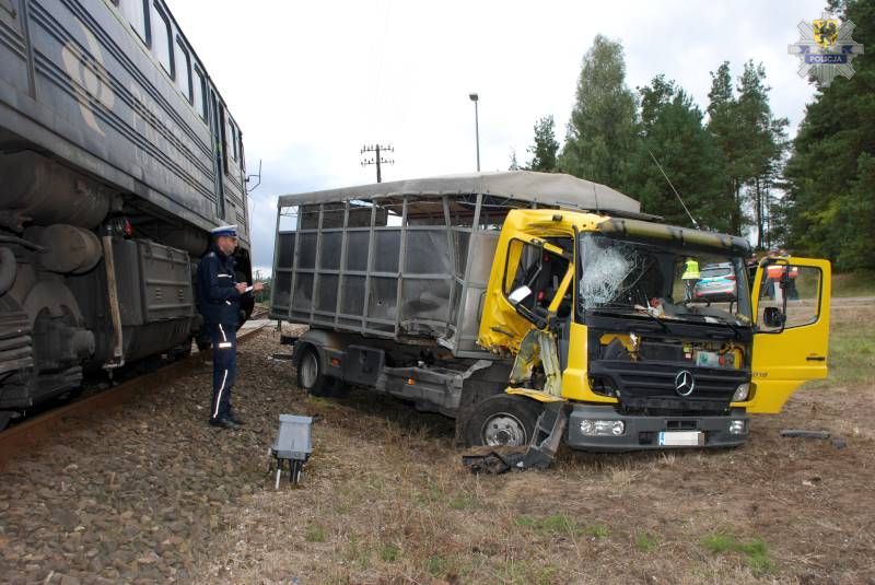 W piątek (18.09.2015 r.) o godz. 9.00 dyżurny kościerskiej komendy otrzymał informację, że w Lipuszu auto zderzyło się z pociągiem. Na miejsce zdarzenia skierował patrol policji. Mundurowi zabezpieczyli miejsce wypadku. Technik kryminalistyczny wykonał również dokumentację fotograficzną oraz oględziny. Jak ustalili funkcjonariusze, 29-letni kierujący ciężarowym mercedesem przejeżdżając przez niestrzeżony przejazd kolejowy, nie zatrzymał się przed znakiem STOP i wjechał pod jadącą lokomotywę. Kierujący i 2-letni pasażer z obrażeniami trafili do szpitala. Przez ponad trzy godziny ruch w tym miejscu był utrudniony.