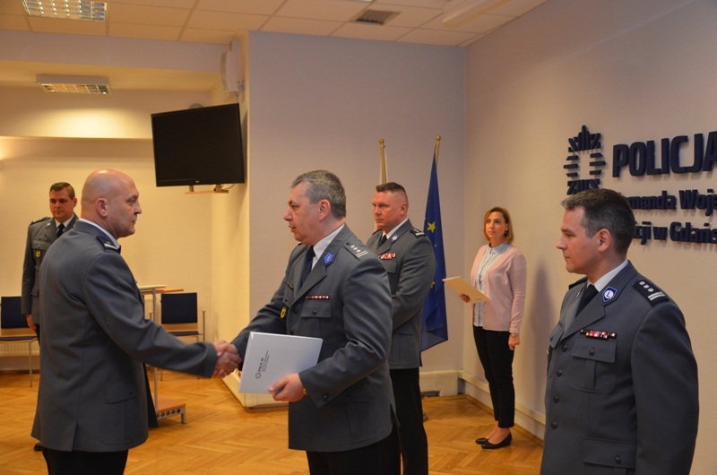Komendant Wojewódzki Policji w Gdańsku wręczył dziś dwa awanse na stanowiskach kierowniczych w komendzie wojewódzkiej oraz listy gratulacyjne przesłane przez Komendanta Głównego Policji dla czterech funkcjonariuszy, którzy w ostatnim czasie osiągnęli bardzo dobre wyniki w służbie.