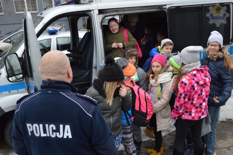 Mundurowi przypomnieli uczniom, jak bezpiecznie poruszać się po drodze i w co powinien być wyposażony pieszy w porze wieczorowo-nocnej poza miastem. W czasie wizyty uczestnicy zimowiska dowiedzieli się jak technik kryminalistyki zabezpiecza ślady na miejscu zdarzenia oraz jak ważna jest praca takiego policjanta.