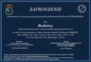 Jednostka Wojskowa FORMOZA przygotowała specjalne zaproszenie na Dzień Otwarty połączony z Dniem Dziecka Jednostki Wojskowej FORMOZA. Impreza odbędzie się 3 czerwca w godz. 10.00-15.00 w Gdyni-Oksywiu (Port Wojenny w Gdyni).