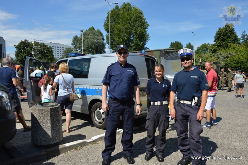 Wczoraj w Gdyni odbyły się uroczystości związane z obchodami święta Wojska Polskiego. Po oficjalnej części uroczystości mieszkańcy Gdyni oraz osoby odwiedzające miasto zaproszeni zostali na festyn rodzinny, na którym swoje stanowisko mieli również policjanci z gdyńskiej komendy. Mundurowi prezentowali sprzęt policyjny, propagowali bezpieczne i odpowiedzialne zachowanie w trakcie wakacyjnego wypoczynku.