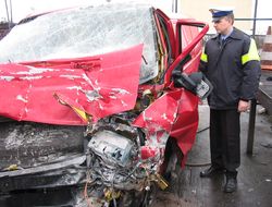 Jak wstępnie ustalili policjanci na trasie Motarzyno - Unichowo (gm. Dębnica Kaszubska) ciężarowy daf kierowany przez 39-letniego mieszkańca spod Bytowa wpadł w poślizg na łuku drogi, zjechał na pas ruchu przeciwnego i czołowo zderzył się z volkswagenem. 49-letni kierowca samochodu osobowego i pasażerka zostali przewiezieni do szpitala gdzie po kilku godzinach kierowca zmarł.