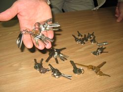 Przed północą dyżurny otrzymał telefoniczne zgłoszenie o dziwnych hałasach dochodzących z piwnicy bloku przy ul. Kotarbińskiego. Na miejsce natychmiast pojechał patrol. Policjanci zobaczyli mężczyznę włamującego się do jednej z piwnic i szybko go zatrzymali. Jak się okazało 29-letni Marcin Ł. był już wcześniej notowany za podobne przestępstwa. W chwili zatrzymania miał przy sobie prawie 40 sztuk różnego rodzaju kluczy patentowych. Przyznał się do kilku włamań do piwnic.