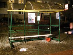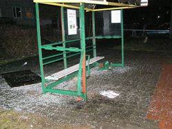 Siła wybuchu rozerwała kosz, rozrzucając jego elementy na kilkanaście metrów i niszcząc konstrukcję wiaty.