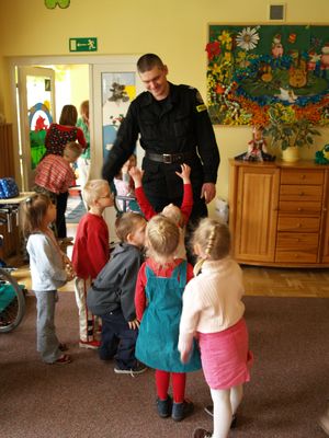 Dzięki częstym odwiedzinom maluchy bardzo przyjaźnie reagują na funkcjonariuszy. Nie obeszło się więc bez pytań o strzelanie do przestępców i pościgi.