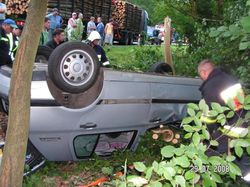 Wczoraj ok. godz. 6.00 rano dyżurny kwidzyńskiej komendy został poinformowany, że przed krzyżówką ryjewską niedaleko Ryjewa w przydrożnym rowie leży samochód. Natychmiast we wskazane miejsce został wysłany patrol policji, straż pożarna i karetka pogotowia.