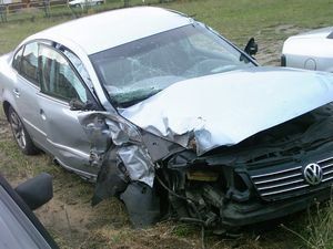 Wczoraj w nocy na jednej z ulic w centrum Lęborka 35-letnia kobieta za kierownicą volkswagena passata prawdopodobnie jechała za szybko i w pewnym momencie uderzyła w jadącego przeciwnym pasem drogi fiata uno. Następnie zjechała na chodnik, przejechała około 150 metrów między drzewami i latarniami po czym wjechała w wiatę przystankową zupełnie ją niszcząc. W wiacie zakleszczyła się. Na szczęście na trasie jej przejazdu nikogo nie było.