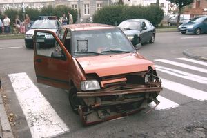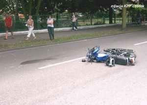 Wczoraj około godz.: 17.00. na skrzyżowaniu Alei Wolności i ul. Wyszyńskiego 21-letni mieszkaniec Lęborka jadąc z kolegą motorem MZ 150 wyprzedzał na skrzyżowaniu daewoo tico, który skręcał sygnalizując ten manewr. Doszło do zderzenia. Siła uderzenia wyrzuciła kierowcę motocykla i jego pasażera kilka metrów w powietrze.