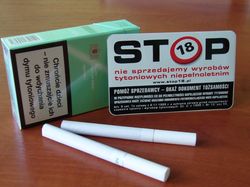 Zgodnie z Ustawą o ochronie zdrowia przed następstwami używania tytoniu i wyrobów tytoniowych (art.) sprzedaż wyrobów tytoniowych osobom do lat 18-tu jest wykroczeniem.