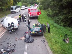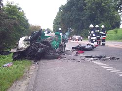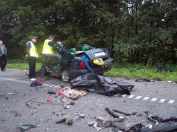 Z nieustalonych dotąd przyczyn, kierowca samochodu marki Rover na prostym odcinku drogi zjechał na pas ruchu w kierunku przeciwnym, wprost pod jadącego TIR-a. W wyniku zderzenia 28-letni kierowca i 27-letni pasażer samochodu osobowego ponieśli śmierć na miejscu. Kierowca ciężarówki nie odniósł obrażeń.