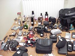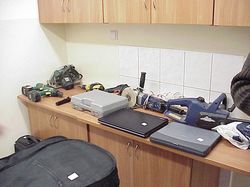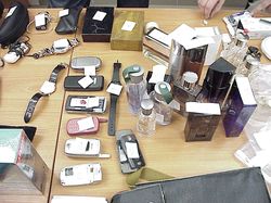 Podczas przeszukania mieszkania należącego do Eugeniusza P. policjanci znaleźli specjalnie skonstruowane skrytki, w których znaleziono m.in. biżuterię, kosmetyki, telefony komórkowe, aparaty fotograficzne, laptopy, odtwarzacze mp3 i mp4.