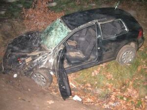 Wczoraj o godz. 21.10 kierujący volkswagenem golfem jechał drogą w kierunku Miastka. Nagle z lewego pobocza wybiegła na jezdnię sarna. Kierowca chcąc ominąć zwierzę odruchowo skręcił kierownicą w lewo - auto wpadło w poślizg i dwukrotnie koziołkowało. Kompletnie zniszczony samochód zatrzymał się w rowie.