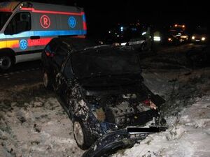 Wczoraj ok. godz. 18.00 na trasie Jaromierz - Człuchów doszło do kolizji drogowej. Kierujący fiatem marea jechał w kierunku Człuchowa. Na śliskiej nawierzchni jezdni wpadł w poślizg i zjechał na pobocze, a następnie dachował. Jadący za nim kierowca bmw chcąc uniknąć zderzenia, również zjechał na pobocze i dachował.