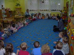 Bardzo ważnym elementem spotkania było uświadomienie dzieciom jakie niebezpieczeństwa towarzyszą im podczas codziennych zabaw na podwórku oraz niebezpiecznymi przedmiotami jakie mogą znaleść w domu.