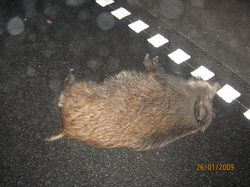 Całe stado dzików liczące około 15 sztuk wybiegło na ruchliwą drogę krajową w Jaromierzu k/Człuchowa. Kilka zwierząt dostało się pod koła przejeżdżających samochodów. Dwa auta ciężarowe mimo hamowania nie uniknęły zderzenia ze zwierzyną.