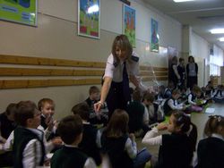 "Bezpieczna droga do szkoły z Lotosem", to program edukacyjno-prewencyjny, podczas którego policjanci z komisariatu na Witominie uczyli dzieci prawidłowego zachowania na drodze.