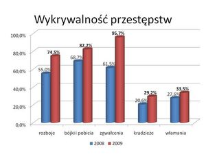 Porównując te same okresy ubiegłego i tego roku, skuteczność w ograniczaniu przestępstw najbardziej uciążliwych społecznie, w niektórych kategoriach jak np. bójki i pobicia czy kradzieże osiągają poziom ponad 30-sto procentowy. To oznacza, że pomimo trudnej sytuacji finansowej, policjanci województwa pomorskiego realizują swoje zadania z ogromną determinacją i zaangażowaniem. Przyznać należy, że w historii regionu nigdy jeszcze nie odnotowano tak wysokich wyników w zwalczaniu przestępczości.