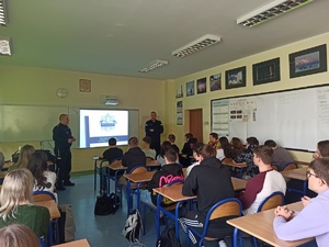 O przemocy i odpowiedzialności z uczniami w ramach zajęć profilaktycznych pt. „Moje prawa, moje granice”.