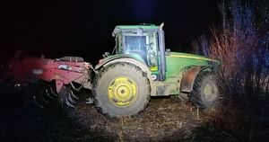 Pijany traktorem wjechał w drzewo. Jego kolega na widok policji zrobił to samo…